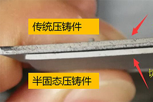 更好的致密性:以牌號(hào)AZ91D為例,原材料密度一般為1.80g/cm3 ,經(jīng)過(guò)熔化壓鑄成型后,半固態(tài)壓鑄工件密度能保證在1.79g/cm3 以上,基本沒沙孔,而傳統(tǒng)壓鑄只有1.70g/cm3左右。